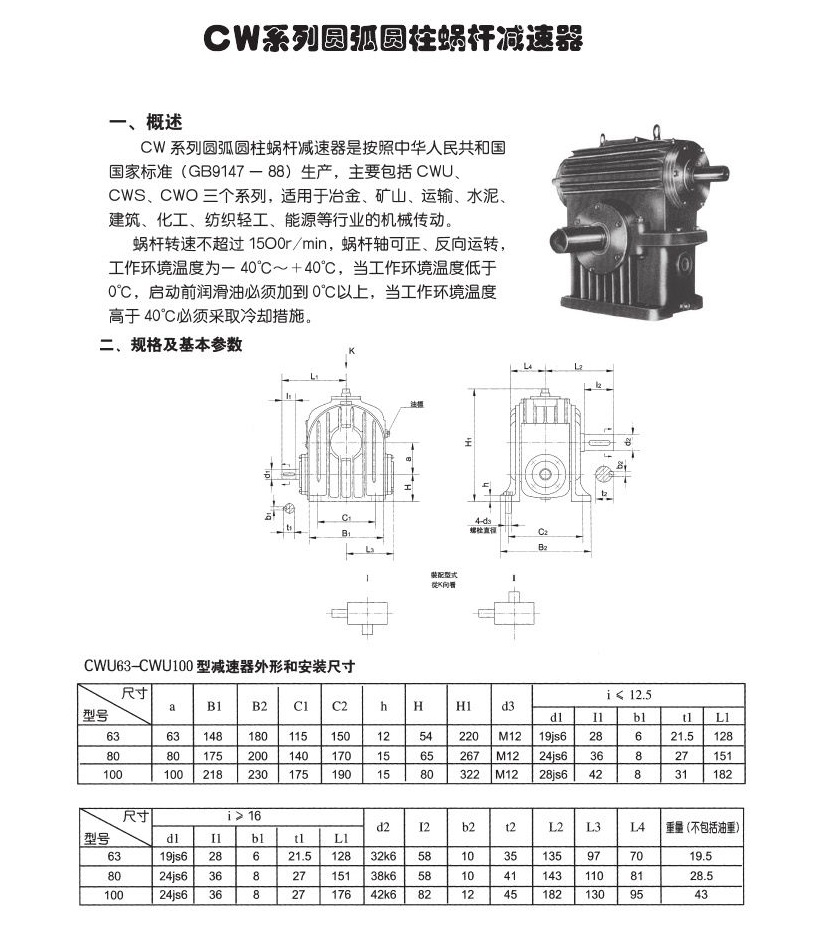 CWU圆弧齿蜗轮减速机